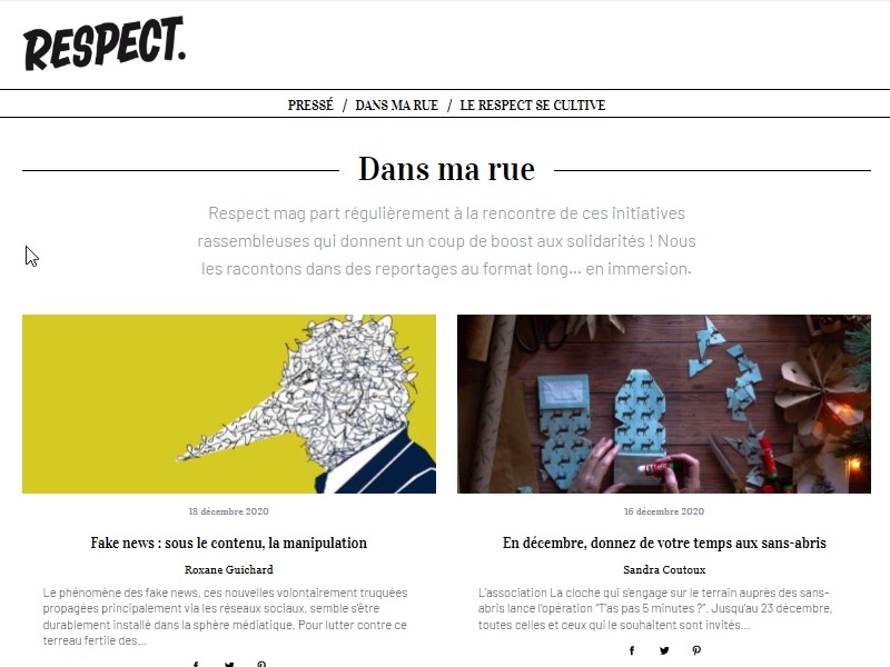 Pour renforcer la présence en ligne de ses médias, Groupe SOS a souhaité créer cinq sites Internet (UP Le Mag, Respect mag, respect, Confiner Ensemble et L’Enquête Sport*) sous WordPress, intégrant une boutique en ligne WooCommerce pour la vente des magazines au numéro et par abonnement, en version papier et numérique.